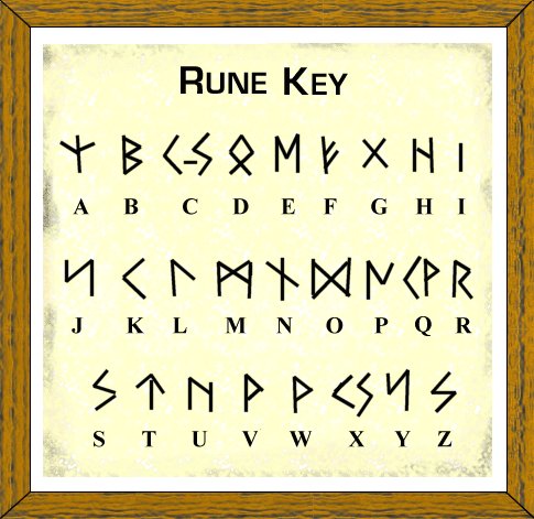 Many of Real Musgrave's Pocket Dragon figurines have runes on them which, when translated, add even more humor to the pieces. (You'll also find runes in much of Real's artwork.) Here is a "rune key" you can use to translate the runes you find. Look below the key for a little extra information from Real.